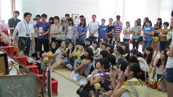 参观访问的第三个部分,同学们在新馆2楼的文化宣传展区听取了文化领事大谷英树先生对日本文化的介绍。主要包括女孩节偶人、五月偶人、浮世绘等传统文化展示和动漫等现代文化展示的讲解。之后,大家一起体验了托球游戏、达磨下降等日本传统玩具的玩法,大谷先生所展示的精彩技艺,博得了参观者的高声喝彩。