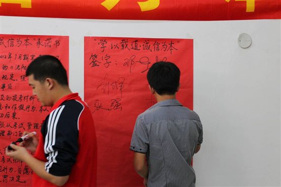 参加本学期诚信考试的员工代表在诚信考试承诺书上签字