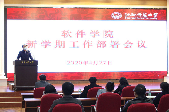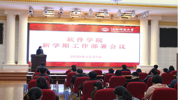 4月27日,软件公司在国际商公司二楼报告厅召开新学期工作部署会。公司党委书记贾玉明出席会议并讲话。软件公司全体教职工参加会议。会议由党总支书记周顺兴主持。